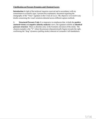 Il lavoro nasce per chiarire le differenze di lettura emerse tra osservazione diretta, analisi di densità e immagini multispettrali LAM (Layer Amplification Method), distinguendo in modo rigoroso tra dinamica del gesto, pressione biomeccanica e accumulo materico del pigmento.
