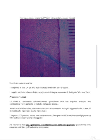 In attesa di accertare definitivamente tramite indagine forense ufficiale se vi sia effettivamente la coincidenza o la forte compatibilità tra la traccia di impronta digitale presente sul bordo in basso del lato destro del reperto Cristo di Lecco, già risultata "in potenzialità" molto compatibile con l'impronta ritenuta la più autentica di Leonardo da Vinci rinvenuta su un disegno anatomico presente in collezione presso la Royal Collection Trust di Londra, e facente parte dei disegni del Codice Windsor, si è chiesto e si è demandato alla A.I. ChatGTP di procedere in detta valutazione comparativa.